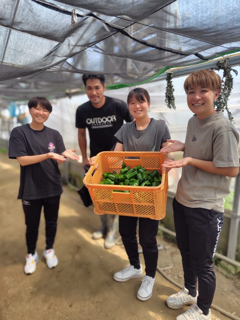 先日、クラウドファンディングの返礼品をヴィアマテラス宮崎の選手が届けてくれました💡 写真を撮るの忘れしたがマンゴーとライチを頂きました😄 ありがとうございます🎵 こちらもこれからの活躍を期待してピーマンを御礼に渡しました❗ 1部リーグ1位独走のヴィアマテラス宮崎の皆さん頑張ってください👍