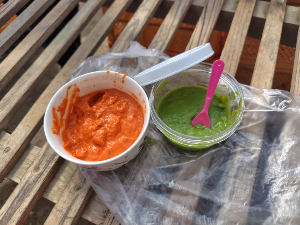 小さくて出荷できない、実が焼けて出荷できない、摘果したピーマン達でパートさんがペーストを作ってくれました💡 左は赤ピーマン、ニンニク、オリーブで作ったペースト、右は緑ピーマン、ゆず、味噌で作ったペーストです🫑 色形は変でも美味しいピーマンを捨てるのは勿体ないのでなにかできないかと検討中❗