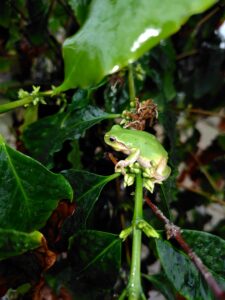 天気がころころ変わってぱっとしないですが、コーヒーにカエルがしがみついてました 田植えも始まり季節が進んでいるのを感じます